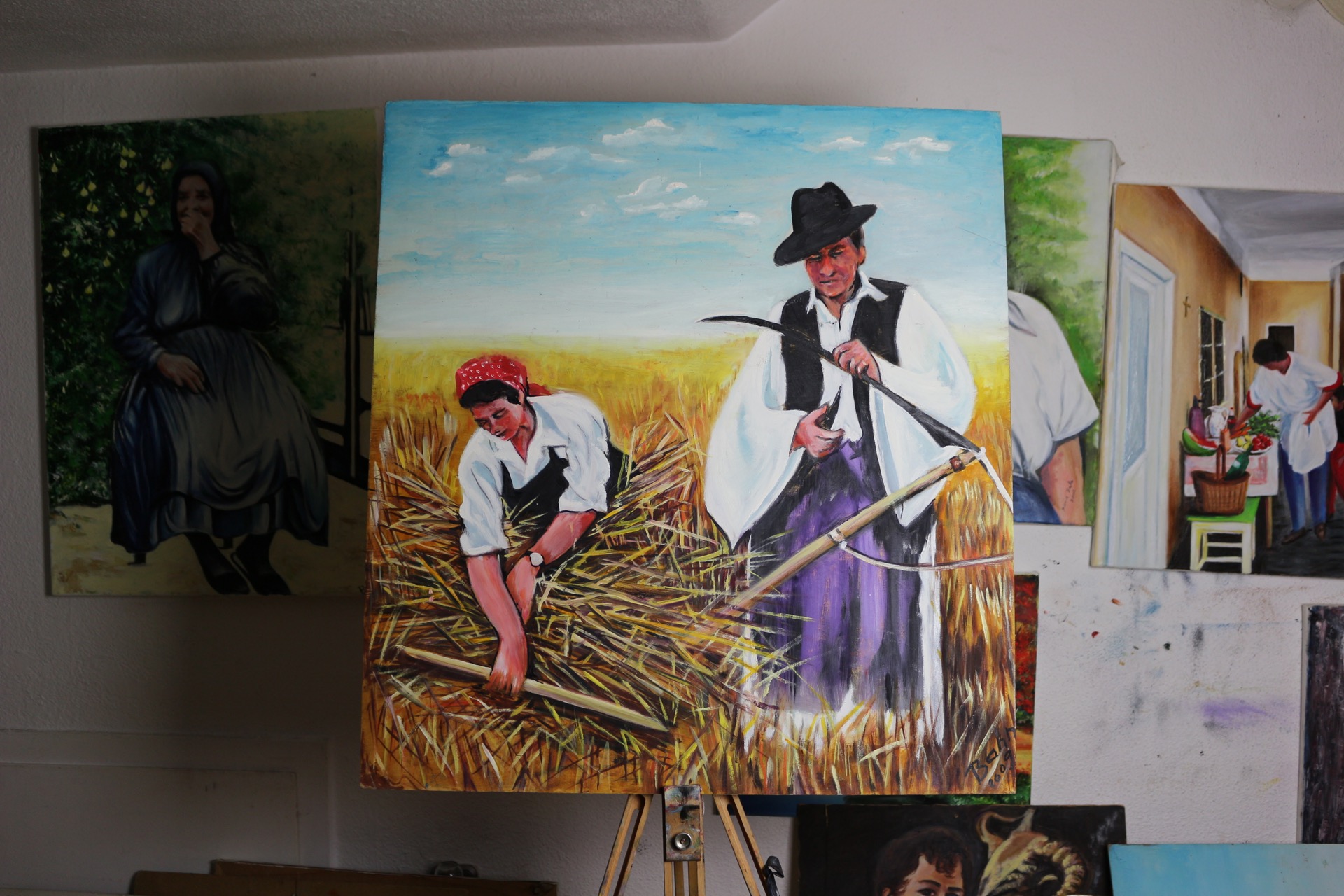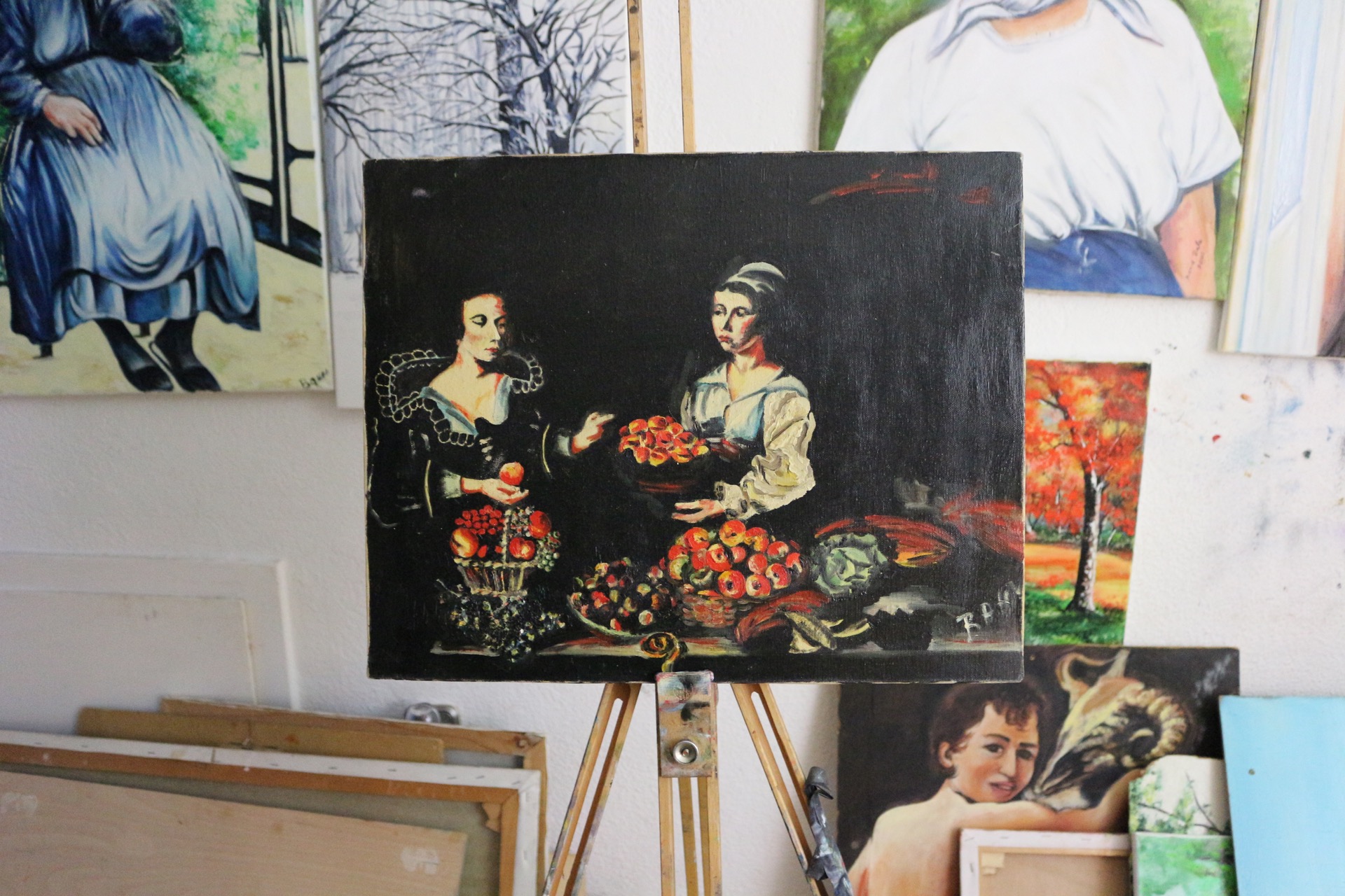Russische Reproduktion. Marktfrauen. Mittelalter, Frauen am Markt, Gesichter, Obst.