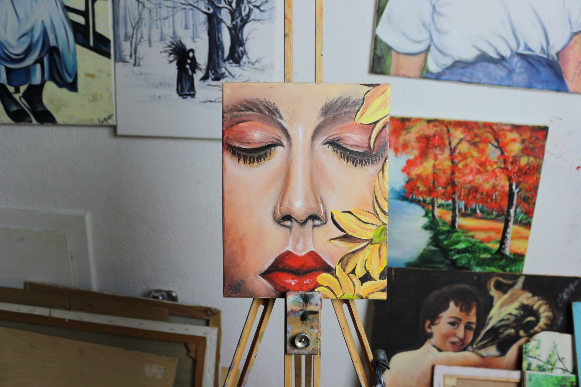 View ProjectTeil vom Gesicht, Junges frisches hübsches Gesicht, begrenztes Motiv, weibliches Motiv, blumiges Motiv