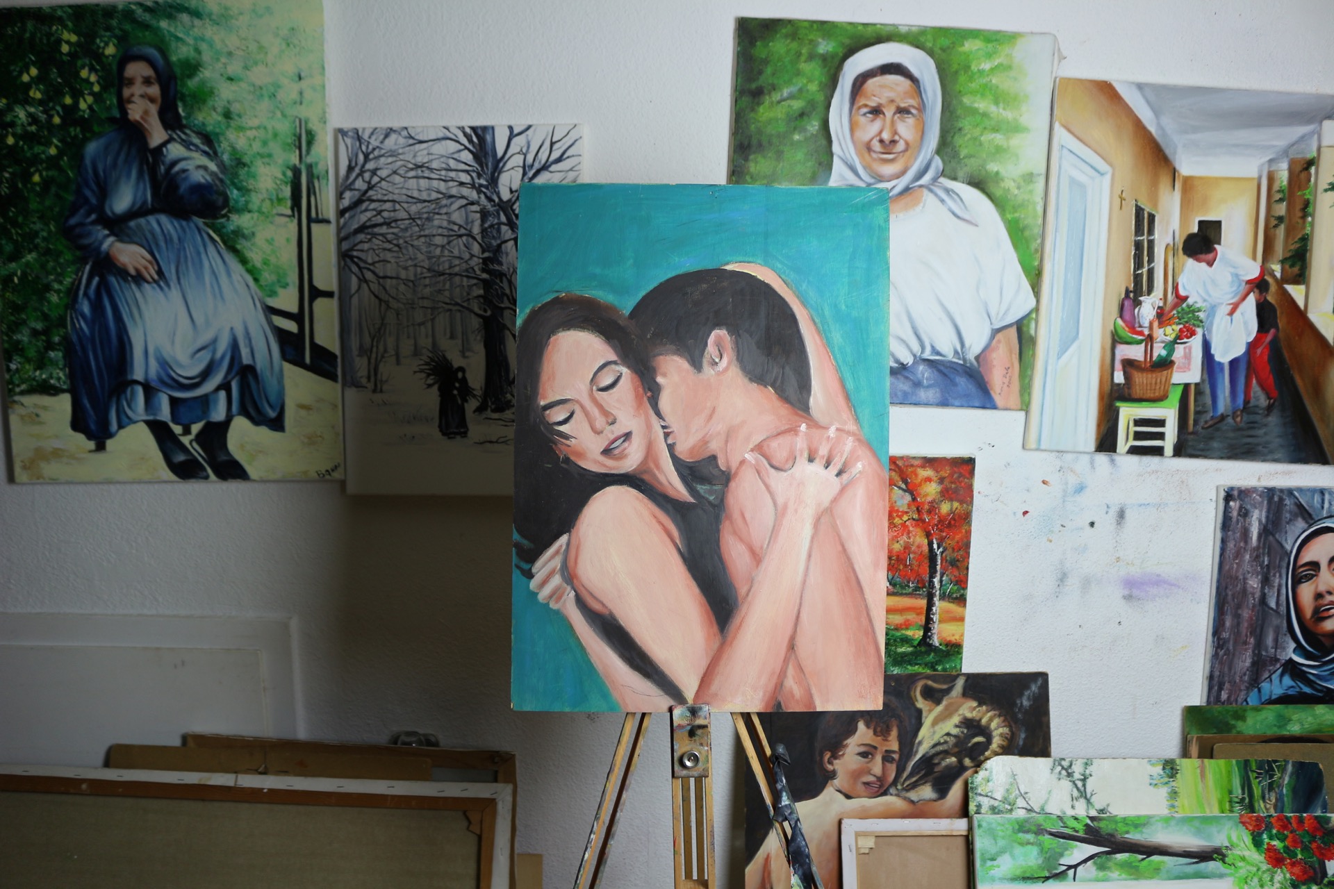 Natur, Donau, Regnerischer Tag an der Donau, Feuer unter den Bäumen